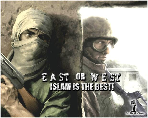 and practical add-on to spread what the RAF termed “leaflets and graffiti” to reach out for the hearts and minds of a younger generation. While the GI is of course – like other cultural circles – influenced by the current political conditions of the world, the followers of AQ have the freedom to choose what products may seem useful for their jihadist endeavors and what deserves to be banned. Gaining practical experience in military training is a divine command (Prucha 2009) according to AQ’s ideology and so it may be natural that some armchair jihadists in their fantasy world play online games. Besides the constant consummation of mostly Arabic handbooks on mines, sniper-rifles, grenades, guerilla and urban warfare tactics, some element freely roam the GI’s product scale, using whatever games and mindsets suits them. It may be logical to find that with the GI and its fans developing so called “modifications” (mods), add-ons or enhancements for already published games, to keep certain games attractive and thus popular. A great deal of such mods is purely multi-player based and have a dominating “Western forces versus Oriental looking Insurgents attitude”. For the jihadist the graphical and role-playing elements published by mostly Western GI branches in the ‘Arabic-Muslim-Insurgent’ formats are nevertheless highly appealing. Any form of warfare, at best against American or Western soldiers, may serve as a parallel to actual conflicts around the world within the Islamic countries that AQ vows to defend and ultimately liberate from its direct as well as indirect occupation. Ones violence intense fantasy world of being or becoming a real-life Mujahid may be fueled by products of the GI and the resonance one may receive by publishing professionally made pro-jihadist pictures within the forums. Besides the publications of AQ’s warfare (militarily and ideologically) concepts, armchair jihadists may exploit online what was taken by the Lebanese Army as lessons learned in the conflict with the Fatah al-Islam in the Palestinian refugee camp Nahir al-Barid in 2007 (Dagher 2009): how to operate and move according to theoretical handbooks and practical videos in a urban- and guerilla warfare like condition; understanding the enemies aspired movement and setting up concealed positions for sniper attacks or IED’s that gives any guerilla troop an advantage over a state organized hierarchical military.