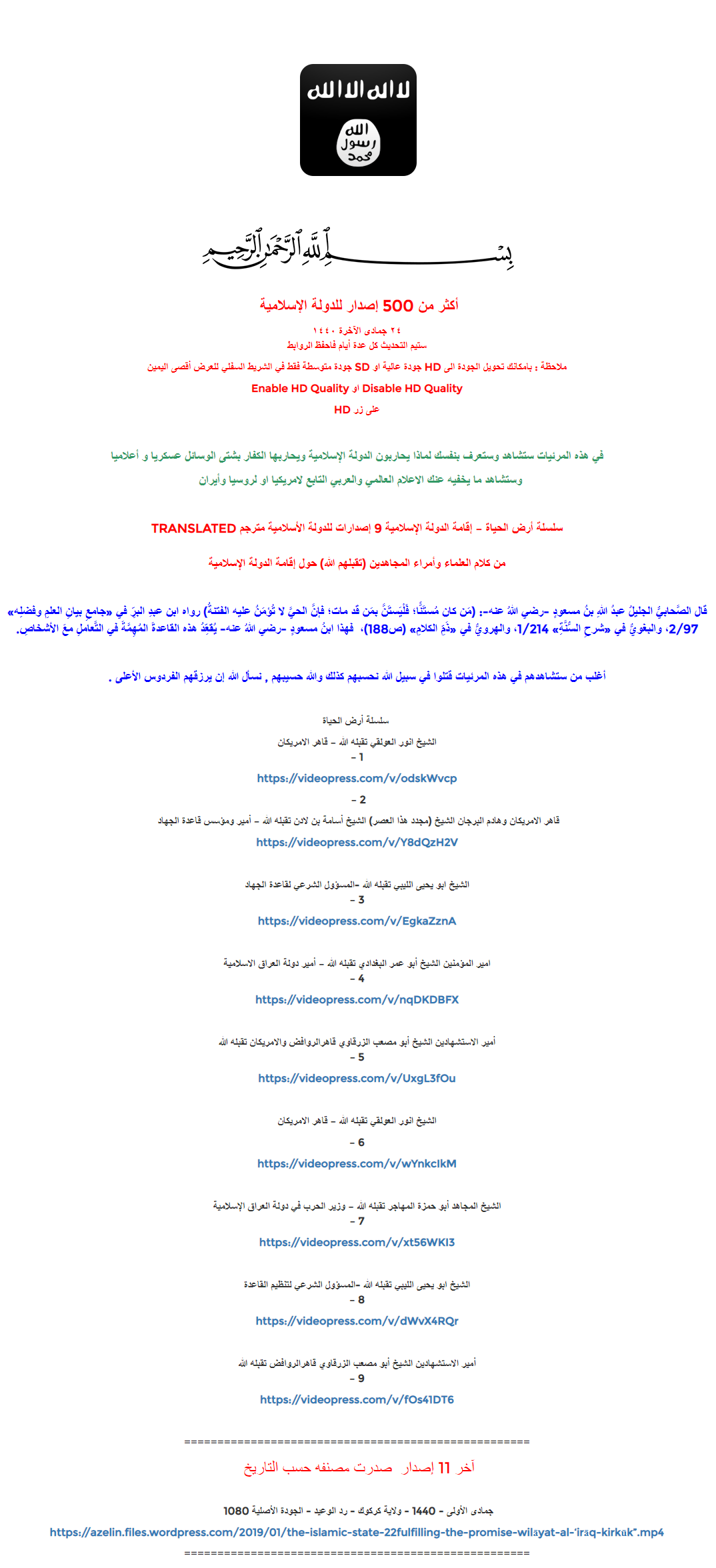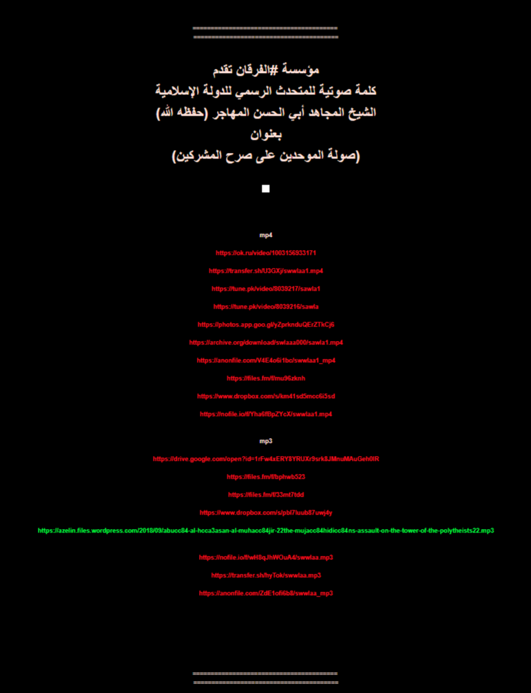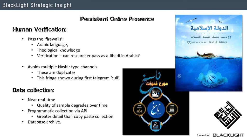 Put simply, whether it is a battle or a channel on Telegram, for Jihadists part of the victory they seek stems from ensuring their actions give da’wah. It is the encoded theological aspects such as this, rather than speculation about crime and utopia, that allows users to move beyond the Nashir based fringes. Being able to identify theological elements which allow individuals to access a greater breadth of Arabic content should be a basic requirement for anything above a degree level researcher.